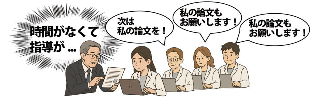 講師や助手、助教や大学院生の論文の指導する時間がとれない。でも彼らの論文執筆にも期限がある。